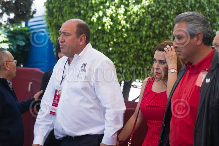 CIUDAD DE MÉXICO, 04FEBRERO2018.- Emilio Gamboa Patrón, Miguel Ángel Osorio Chong, y Manlio Fabio Beltrones, al finalizar la ceremonia del 89 aniversario del Partido Revolucionario Institucional, realizado en el CEN del PRI. FOTO: CUARTOSCURO.COM