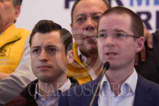 CIUDAD DE MÉXICO, 04MARZO2018.- Emilio Álvarez Icaza, Laura Angélica Rojas, Agustín Basave, y Fernando Rodríguez Doval, acompañaron al candidato de la coalición "Por México al Frente", Ricardo Anaya, quien ofreció una conferencia de prensa en la que pide que el gobierno federal saque las manos del proceso electoral. FOTO: GALO CAÑAS /CUARTOSCURO.COM