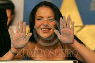 MEXICO, D.F. 04FEBRERO2005.- Ana Patricia Rojo develó las huellas de sus manos en galerías, la plaza de la estrellas. FOTO: Iván Stephens/CUARTOSCURO.COM