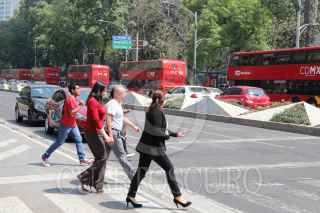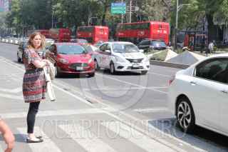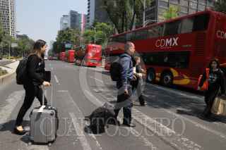 CIUDAD DE MÉXICO, 05MARZO2018.- Las unidades del Metrobus Línea 7 quedaron atoradas en Reforma luego de que se presentó una protesta de campesinos que bloquearon esta arteria. Una fila de estas nuevas unidades se pudieron observar estacionadas en lo que se liberaba esta vía. FOTO: BERNANDINO HERNÁNDEZ /CUARTOSCURO.COM