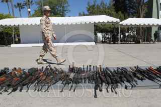 TIJUANA, BAJA CALIFORNIA, 05MARZO2018.-Un total de mil 839 armas de fuego fueron destruidas por ejército en las instalaciones del Cuartel Morelos de La 2da Zona Militar. El armamento proveniente de la 45/a, 3/a y 2/a zonas militares de la II región militar fueron aseguradas después de ser utilizadas por el crimen organizado durante los últimos 10 años. FOTO: CUARTOSCURO.COM