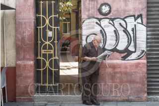CIUDAD DE MÉXICO, 06MARZO2018.- Con la proliferación del internet y redes sociales, hoy en día se ha disminuido la venta y lectura de medios de comunicación impresos. En la imagen un señor de la tercera edad lee un periódico en el portón de una vecindad del Centro Histórico. FOTO: TERCERO DÍAZ /CUARTOSCURO.COM