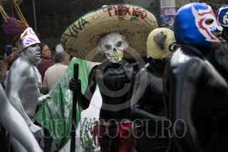 SAN NICOLÁS DE LOS RANCHOS, PUEBLA, 06MARZO2018.- En la tercera semana de cuaresma se realizó la tradicional fiesta del "adiós de la carne" en el poblado de San Nicolás de los Ranchos ubicado en las faldas del volcán Popocatépetl, donde hombres pintados o "Xinacates", recorren las calles con los cuerpos pintados a base de aceite comestible y pintura en polvo. Los "pintados" piden dinero intimidando a las personas que se encuentran a su paso´pal baño o la cerveza a cambio de no ser manchados. FOTO: HILDA RÍOS /CUARTOSCURO.COM