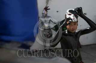SAN NICOLÁS DE LOS RANCHOS, PUEBLA, 06MARZO2018.- En la tercera semana de cuaresma se realizó la tradicional fiesta del "adiós de la carne" en el poblado de San Nicolás de los Ranchos ubicado en las faldas del volcán Popocatépetl, donde hombres pintados o "Xinacates", recorren las calles con los cuerpos pintados a base de aceite comestible y pintura en polvo. Los "pintados" piden dinero intimidando a las personas que se encuentran a su paso´pal baño o la cerveza a cambio de no ser manchados. FOTO: HILDA RÍOS /CUARTOSCURO.COM