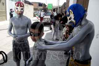SAN NICOLÁS DE LOS RANCHOS, PUEBLA, 06MARZO2018.- En la tercera semana de cuaresma se realizó la tradicional fiesta del "adiós de la carne" en el poblado de San Nicolás de los Ranchos ubicado en las faldas del volcán Popocatépetl, donde hombres pintados o "Xinacates", recorren las calles con los cuerpos pintados a base de aceite comestible y pintura en polvo. Los "pintados" piden dinero intimidando a las personas que se encuentran a su paso´pal baño o la cerveza a cambio de no ser manchados. FOTO: HILDA RÍOS /CUARTOSCURO.COM