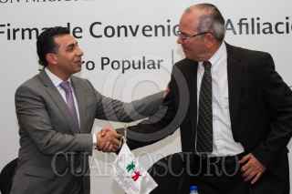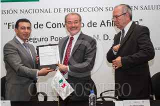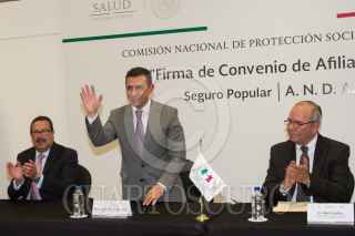 CIUDAD DE MÉXICO, 08MARZO2018.- Antonio Chemor Ruiz, titular de la Comisión Nacional de Protección Social en Salud, firmó un convenio de colaboración con Abel Casillas, secretario sustituto provisional de la ANDA, para que sus agremiados tengan acceso al Seguro Popular. FOTO: ISAAC ESQUIVEL /CUARTOSCURO.COM
