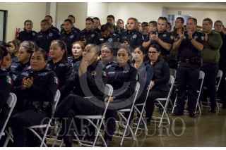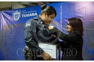 TIJUANA, BAJA CALIFORNIA, 08MARZO2018.- En el marco del Día Internacional de la Mujer, el ayuntamiento de la ciudad reconoció a la agente María Teresa García, con la medalla al mérito por su labor en beneficio de las mujeres. Durante el evento se reconoció la labor de las mujeres en acciones de la corporación policiaca. FOTO: CUARTOSCURO.COM