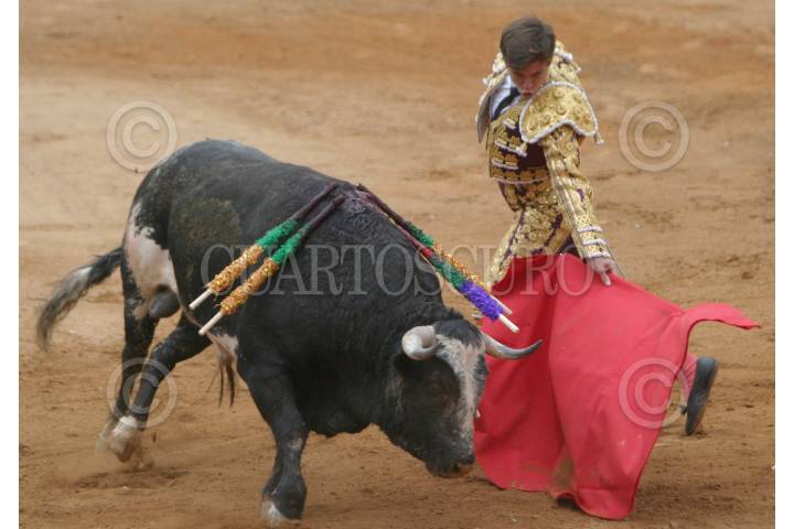 MEXICO D.F 05 FEBRERO 2005.- El español Julián López, "El Juli" torea al tercero de la tarde, de nombre Trojano logrando el indulto del astado de la ganadería de Montecristo, en esta tarde en la monumental plaza México en su 59 aniversario. FOTO: Eunice Adorno/CUARTOSCURO.COM