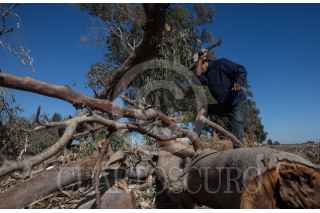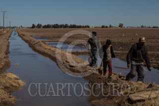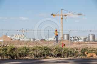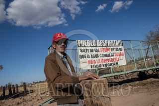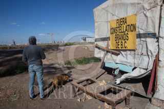 MEXICALI, BAJA CALIFORNIA, 09MARZO2018.-Ambientalistas y ejidatarios de la región miembros de colectivos como Mexicali Resiste, Baja California Resiste y el Comite en Defensa del Agua, han denunciado ante diversos foros nacionales e internaciones que la “construcción con licitaciones irregulares y Constellation Brands, empresa cervecera, en obra en esta ciudad, y que abastecerá al mercado estadounidense” solo traerá más escasez de agua en la región. Explican que la empresa transnacional consumirá 20 millones de metros cúbicos de agua al año para fabricar la cerveza del Grupo Modelo. Esta cantidad es el doble del agua que consume el municipio de Ensenada anualmente, nueve millones, y donde desde hace varios años se raciona el consumo en las colonias populares. Los agricultores de la zona argumentaron que año con año pierden hectáreas de cosechas debido a que ha habido una reducción en el agua que les proveen los distritos de riego, aunado al revestimiento de cemento del canal Todo Americano, ya que anterior a esto, las filtraciones de agua permitían el abastecimiento de barrancos naturales que regaban alrededor de 800 hectáreas. Asimismo, denunciaron que los módulos de riego son sitios donde la corrupción opera y tienen un mercado negro de agua, vendiéndole el agua al ejidatario con mayor capacidad económica, incluso mencionaron que se vende de manera ilegal más agua de la establecida a Tijuana debido a su crecimiento poblacional e industrial. Debido a esto, temen que con la llegada de la cervecera los más afectados sean ellos y sus cultivos. En la imagen, trabajadores de la planta Constellation Brands refuerzan las cercas y alambres de púas para seguridad debido a que en los últimos meses se intensificaron las protestas contra la empresa transnacional. FOTO: TERCERO DÍAZ /CUARTOSCURO.COM