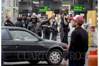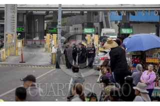 TIJUANA, BAJA CALIFORNIA, 10MARZO2018.- Una amenaza de bomba provocó el cierre parcial de la garita de San Ysidro, provocando la movilización de agentes policíacos y elementos del cuerpo de bomberos en ambos lados de la frontera. Agentes de Aduanas y Control Fronterizo (CBP) cerraron las puertas de la 23 a la 27, después de que un hombre dejara el paquete en uno de los accesos. Al lugar acudió el Escuadrón Antibombas del Departamento de Bomberos de San Diego, que después de intervenir el paquete determinaron que no representaba peligro alguno. FOTO: CUARTOSCURO.COM