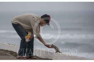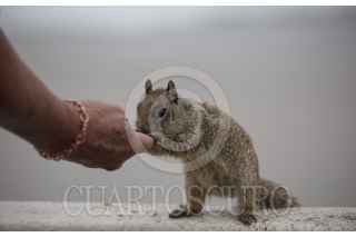 TIJUANA, BAJA CALIFORNIA, 10MARZO2018.-Ramón Salcedo acude todos los días al malecón de Playas de Tijuana para alimentar a una ardilla. El señor comentó que tiene una amistad con ella, que inició un día mientras estaba sentado en una banca comiendo cacahuates, fue entonces cuando el roedor subió a sus piernas para que le diera de comer. FOTO: OMAR MARTÍNEZ /CUARTOSCURO.COM
