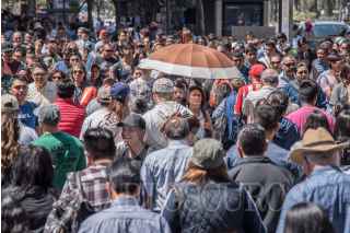 CIUDAD DE MÉXICO, 10MARZO2018.- Decenas de traseúntes circulan por el paso de una importante avenida de la capital. Entre las personas, sólo una mujer se cubre del sol con una sombrilla. FOTO: MARIO JASSO /CUARTOSCURO.COM