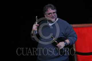 ZAPOPAN, JALISCO, 10MARZO2018.- Guillermo del Toro cineasta mexicano recién galardonado con el Oscar a mejor Dirección y mejor película por su largometraje “La Forma del Agua” en la 90 entrega de los premios de la academia de Hollywood, participo en el Master Class en el marco de la edición 33 del Festival Internacional de Cine de Guadalajara FICG, mismo que fue moderado por Leonardo García Tsao y el cual se llevo a cabo en el Conjunto de Artes Escénicas CAE de la Universidad de Guadalajara U. De G. FOTO: FERNANDO CARRANZA GARCIA / CUARTOSCURO.COM