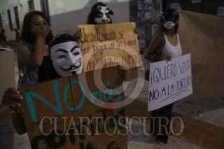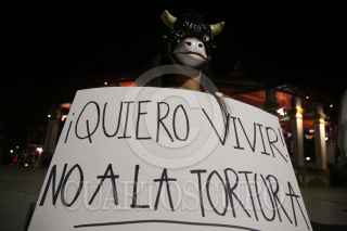 CAMPECHE, CAMPECHE, 10MARZO2018.- Integrantes de la sociedad civil organizada "Campeche Protesta", integrada por artistas, artesanos y familias de todas las edades, se manifestaron está tarde en contra de las corridas de toros y ante cualquier forma de maltrato animal. El próximo 17 de marzo se realizará en esta ciudad, una corrida mixta en la plaza de toros portátil La Española, en donde participaran el rejoneador Pablo Hermoso de Mendoza y el matador Xavier Ocampo. FOTO: MARTÍN ZETINA /CUARTOSCURO.COM