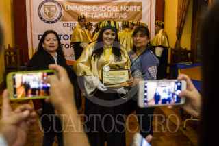 CIUDAD DE MÉXICO, 12MARZO2018.- Nestora Salgado García, activista mexicana y ex líder del movimiento de autodefensa en Olinalá Guerrero, fue investida con el Doctorado Honoris causa por parte de la Universidad del Norte de Tamaulipas. La candidata al Senado de la República por el partido Morena, acudió a la pequeña ceremonia que se llevó acabo en la Casa de Cultura de Tamaulipas. FOTO: CRISÓFORO GIMÉNEZ /CUARTOSCURO.COM
