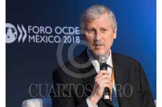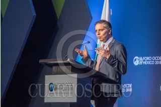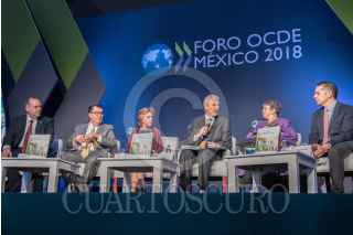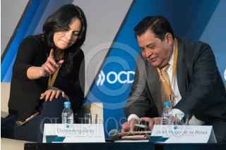 CIUDAD DE MÉXICO, 13MARZO2018.- Dione Anguiano, jefa delegacional de Iztapalapa, y Juan Hugo de la Rosa, presidente municipal de Nezahualcóyotl, durante su participación en la mesa de diálogo "Impulsar el desarrollo de las regiones: hacia un federalismo eficaz y transparente", en el marco del Foro OCDE México 2018. FOTO: MARIO JASSO /CUARTOSCURO.COM