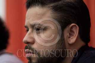 CIUDAD DE MÉXICO, 13MARZO2018.- Jesús Romero Colín, víctima de abuso sexual cuando tenía 11 años y acusante de Carlos López Valdés (ex párroco de San Agustín de las Cuevas en Tlalpan), durante la conferencia de prensa para expresar detalles de la contienda legal que realizaran en los próximos días contra el religioso, a quien, el día de ayer, se le dictó sentencia por 62 años de prisión por el delito de violación. Romero Colín se desempeñó como acolito del párroco en 1994 y 1998 y presentó su denuncia hasta 2007. Esta sentencia es la primera en su tipo en la capital del país y según los abogados y el mismo Jesús Romero es la tercera o cuarta a nivel nacional. FOTO: GALO CAÑAS /CUARTOSCURO.COM