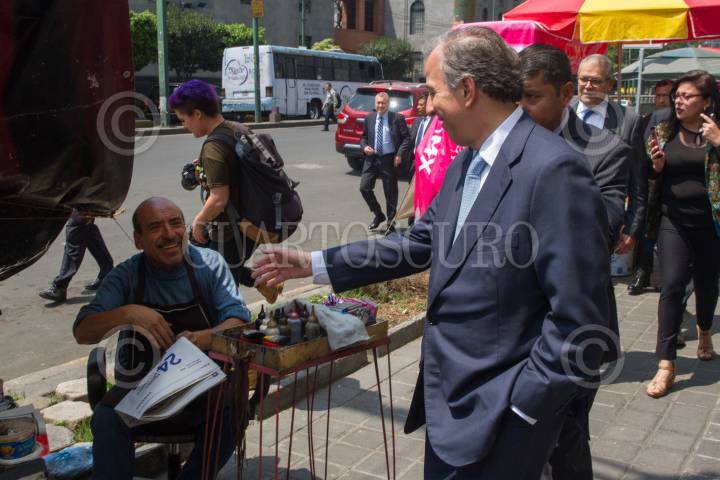 CIUDAD DE MÉXICO, 13MARZO2018.- José Antonio Meade, candidato del PRI a la Presidencia de la República, camino por la calle de Lieja tras reunirse con ejecutivos de Bancomer. FOTO: MOISÉS PABLO /CUARTOSCURO.COM