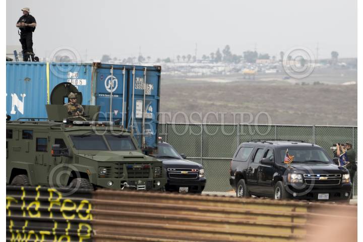 TIJUANA, BAJA CALIFORNIA, 13MARZO2018.- En un fuerte operativo de seguridad por parte de México y Estados Unidos, el presidente de este país, Donald Trump acudió a la frontera para ver los ocho prototipos de lo que podría ser el próximo muro divisorio. Del lado mexicano colindante con la colonia las Torres, manifestantes asistieron para mostrar su inconformidad con el actual gobierno de Donald Trump, mientras que por el lado estadounidense se colocaron tractocamiones enfrente de los prototipos para obstaculizar que el presidente estadounidense sea visto desde el lado mexicano. FOTO: OMAR MARTÍNEZ /CUARTOSCURO.COM
