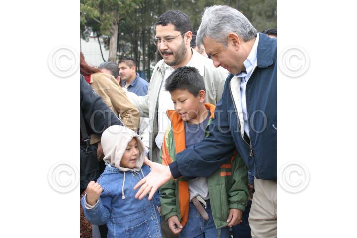 MEXICO, D.F. 06FEBRERO2005.- Vecinos de la delegación Iztacalco se acercan al jefe de gobierno del D.F., Andrés Manuel López Obrador, para saludarlo durante su gira de trabajo. FOTO: Sandra Perdomo/ CUARTOSCURO.COM