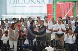 SAN ANTONIO LIMÓN, VERACRUZ, 13MARZO2018.- Enrique Peña Nieto, Presidente de México, encabezó la inauguración del Almacén Granelero de Diconsa. Lo acompañaron el gobernador de la entidad, Miguel Ángel Yunes Linares, y Eviel Pérez Mañaga, titular de la Sedesol. FOTO: ALBERTO ROA /CUARTOSCURO.COM