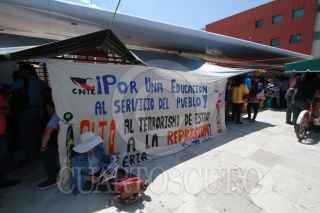 OAXACA, OAXACA, 13MARZO2018.- Integrantes de la sección 22 de la CNTE culminaron este martes con los tres días de movilizaciones acordados por su 5º Congreso Político, en el que se definió una jornada de lucha para los días 11, 12 y 13 de marzo en contra de la aplicación del examen para el ingreso al Servicio Profesional Docente. Para este martes, los mentores tomaron diversas dependencias del gobierno estatal y federal, la principal fue la Ciudad Administrativa misma que es un complejo perteneciente al gobierno estatal y el cual alberga cerca de 8 secretarías del gobierno de Oaxaca. FOTO: ARTURO PÉREZ ALFONSO/ CUARTOSCURO.COM