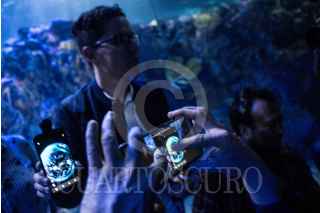 CIUDAD DE MÉXICO, 13MARZO2018.- Parte del equipo de marketing de la empresa en telecomunicaciones Motorola e invitados, disfrutaron de los nuevos equipos celulares Moto z2 con los dispositivos Moto Mods, los cuales pueden imprimirte una foto directo de tu celular como también tomar fotografías de 360 grados. La presentación de los nuevos productos se llevó acabo en el acuario Inbursa. FOTO TERCERO DÍAZ /CUARTOSCURO.COM