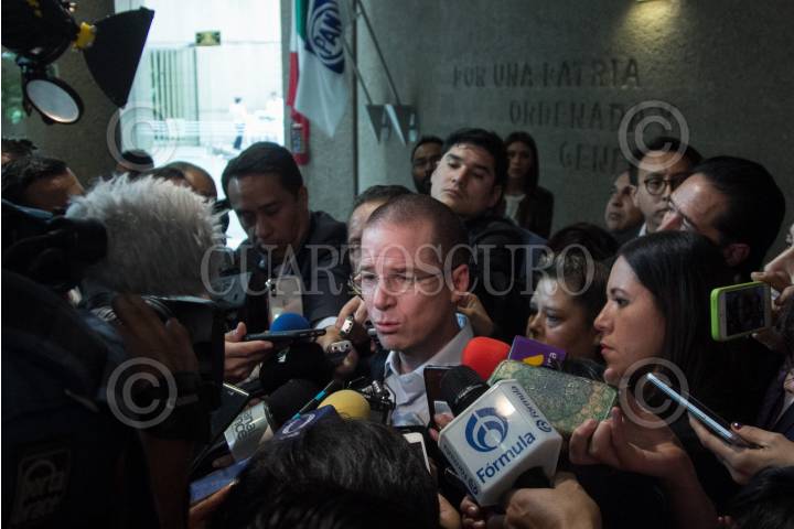 CIUDAD DE MÉXICO, 14MARZO2018.- Ricardo Anaya, candidato a la presidencia por la coalición Por México al Frente, durante su mensaje con motivo del Encuentro Nacional con Candidatos Federales, diputados y senadores en la sede nacional del partido. El candidato habló acerca de su reunión sostenida con la canciller alemana Angela Merkel, así como la agresión que recibió a su arribo al país. FOTO: GALO CAÑAS /CUARTOSCURO.COM