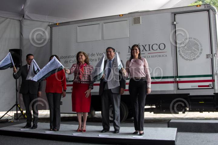 CIUDAD DE MÉXICO, 14MARZO2018.- Arely Gómez, secretaria de la Función Púbica, y Ana Laura Arratia Pineda, subsecretaria de Control y Auditoría de la Gestión Pública, durante la presentación y puesta en marcha oficial de los Laboratorios Móviles de Verificación de Calidad de Materiales en la Obra Pública, en la sede de la secretaria. El fin de las nuevas unidades será verificar que las construcciones se realizan con la calidad y los materiales eficientes. FOTO: GALO CAÑAS /CUARTOSCURO.COM