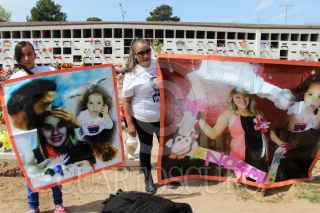 CIUDAD JUÁREZ, CHIHUAHUA, 14MARZO2018.- Familiares de Yesenia Pineda Tafoya, quien murió hace dos años por complicaciones tras varias operaciones fallidas realizadas en hospitales del gobierno estatal, la recordaron en su tumba en el Panteón Jardines Eternos, ahí exigieron justicia al gobierno ya que el caso esta empantanado. Su madre Guadalupe Tafoya acompañada de sus otras hijas y su nieta, hija de Yesenia, señaló que ha intentado reunirse con el gobernador Javier Corral, sin que haya tenido respuesta. FOTO: NACHO RUIZ /CUARTOSCURO.COM