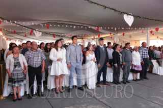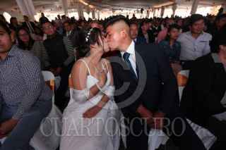 TOLUCA, ESTADO DE MÉXICO, 16MARZO2018.- Como parte de la campaña Matriminios con Valor del ayuntamiento de Toluca, 180 parejas contrajeron matrimonio, es la tercera vez que se realiza esta campaña con éxito en la capitalina Mexiquense, las parejas recibe su acta de matrimonio y con sus familias pueden disfrutar de una fiesta compartida. FOTO: ARTEMIO GUERRA BAZ /CUARTOSCURO.COM