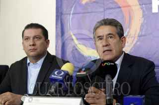 PUEBLA, PUEBLA, 16MARZO2018.- Diódoro Carrasco, secretario de gobierno y Jesús Morales, secretario de seguridad pública; ofrecieron rueda de prensa para dar informes sobre el asesinato de Gustavo Gómez, candidato a la alcaldía del municipio Francisco Z. Mena, por el PRI. FOTO: HILDA RÍOS /CUARTOSCURO.COM