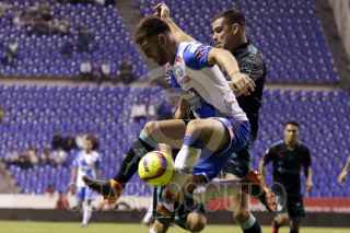 PUEBLA, PUEBLA, 16MARZO2018.- Los jugadores Lucas Cavallini y Carlos Izquierdoz disputan el balón durante jugada del partido correspondiente a la jornada 12 del torneo Clausura 2018 de la Liga MX celebrado en el estadio Cuauhtémoc con triunfo a favor de los visitantes. FOTO: HILDA RÍOS /CUARTOSCURO.COM