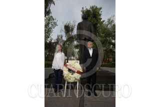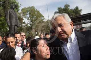 CIUDAD DE MÉXICO, 18MARZO2018.- El candidato presidencial de la coalición "Juntos haremos historia", Andrés Manuel López Obrador, acompañado de Claudia Sheinbaum, candidata de Morena a la Jefatura de Gobierno, realizaron una guardia de honor en el Monumento a Lázaro Cárdenas, ubicado en la colonia Doctores, para conmemorar la Expropiación Petrolera. FOTO TERCERO DÍAZ /CUARTOSCURO.COM