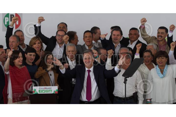 CIUDAD DE MÉXICO, 18MARZO2018.- Quirino Ordaz Coppel, gobernador de Sinaloa, y Miguel Riquelme, gobernador de Coahuila, durante el mitin en el que José Antonio Meade Kuribreña, candidato a la Presidencia de la República por la coalición "Todo por México", se registró oficialmente ante el INE y así para poder competir en las próximas elecciones de julio. FOTO: MOISÉS PABLO /CUARTOSCURO.COM