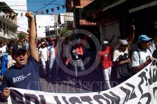 CHILPANCINGO, GUERRERO, 11FEBRERO2005.- Alumnos de la normal rural de Ayotzinapa marcharon por las principales calles de la ciudad, para recordar la represión que sufrieron hace 7 años y exigir una audiencia de carácter resolutivo con el titular de la SEG, Daniel Pano Cruz. FOTO: Oscar Alvarado/CUARTOSCURO.COM