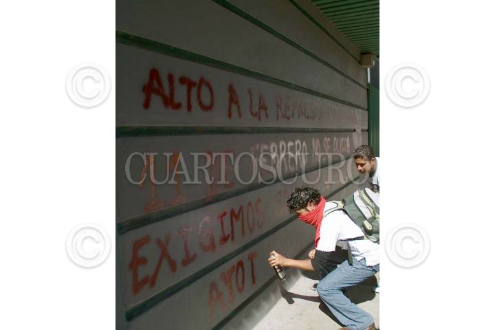 CHILPANCINGO, GUERRERO, 11FEBRERO2005.- Alumnos de la normal rural de Ayotzinapa marcharon por las principales calles de la ciudad, para recordar la represión que sufrieron hace 7 años y exigir una audiencia de carácter resolutivo con el titular de la SEG, Daniel Pano Cruz. FOTO: Oscar Alvarado/CUARTOSCURO.COM