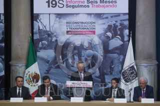 CIUDAD DE MÉXICO, 19MARZO2018.- Miguel Ángel Mancera Espinosa, jefe de gobierno, encabezó el Informe Seis Meses Seguimos Trabajando, sobre las acciones realizadas para contrarrestar las afectaciones por el sismo del pasado 19 de septiembre del 2017. En el acto el mandatario estuvo acompañado por todo su gabinete en el Antiguo Palacio del Ayuntamiento. FOTO: TERCERO DÍAZ /CUARTOSCURO.COM