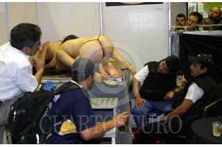México, D.F., 12FEBRERO2005.- El segundo día de la Expo Sexo and Entertainment, se sigue realizando en Palacio de los Deportes, muchas hombres y mujeres han disfrutado de los espectaculos y artículos que ahí se ofrecen. FOTO: Moisés Pablo/CUARTOSCURO.COM