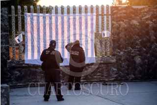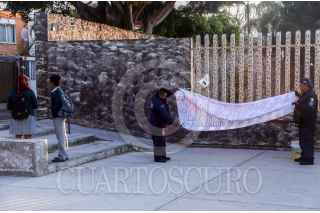 CUERNAVACA, MORELOS, 20MARZO2018.-Policias de Morelos, reportan la existencia de una manta colgada por un grupo criminal en la barda perimetral de la secundaria número 2, Francisco Gonzales Bocanegra, ubicado en la calle Otilio Montaño de la colonia Alta Vista. Los policías retiraron la manta blanca escrita con colores rojo y negro. El mensaje fue dejado en una de las colonias con más alto índice de pobreza y criminalidad, el 2 de marzo pasado un abogado fue asesinado a tiros tres calles abajo. FOTO: MARGARITO PÉREZ RETANA /CUARTOSCURO.COM