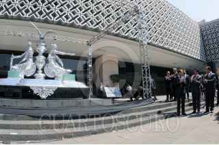 CIUDAD DE MÉXICO, 20MARZO2018.- En la explanada de la Cámara de Diputados develaron la escultura "Gran Tintero Plateado", con un valor de 2 millones 250 mil pesos. La ceremonia fue presidida por el presidente de la mesa directiva Marko Cortés. FOTO: CUARTOSCURO.COM