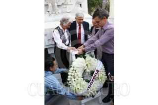 CIUDAD DE MÉXICO, 21MARZO2018.- Andres Manuel Lopez Obrador candidato de MORENA a la presidencia de la república, montó una guardia de honor en el Hemiciclo a Juarez acompañado de la ex ministra de la SCJN Olga Sanchez Cordero y Claudia Sheinbaum, candidata de MORENA a la gubernatura de la Ciudad de Mexico. FOTO: SAÚL LÓPEZ /CUARTOSCURO.COM