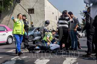 CIUDAD DE MÉXICO, 21MARZO2018.- Un señor que se transportaba en motocicleta chocó cuando un automovil blanco se le atravesó en su trayectoria sobre Izazaga esquina con 5 de febrero en la zona centro. FOTO: TERCERO DÍAZ /CUARTOSCURO.COM