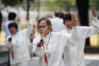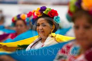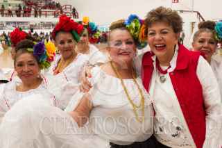 CIUDAD DE MÉXICO, 21MARZO2018.- Aracely Escalante Jasso, titular del Instituto Nacional de las Personas Adultas Mayores, se toma la foto con mujeres durante la inauguración los 27 Juegos Nacionales del INAPAM, en el gimnacio de exhibición Edel Ojeda Malpica del IPN. FOTO: MOISÉS PABLO /CUARTOSCURO.COM