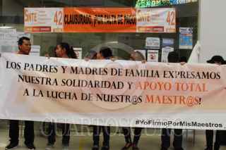 CIUDAD JUÁREZ, CHIHUAHUA, 21MARZO2018.- Cientos de maestros de la sección 42 del Sindicato Nacional de Trabajadores de la Educación protestaron afuera de las oficinas del Gobierno del Estado de Chihuahua en Ciudad Juárez para exigir se les pague su sueldo ya que tienen más de seis meses sin recibirlo. Los maestros, quienes iniciaron la marcha desde la Plaza de la Mexicanidad, se colocaron en la entrada de las instalaciones y en la oficina de Recaudación y Rentas. FOTO: FAVIA LUCERO /CUARTOSCURO.COM