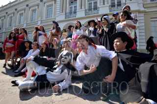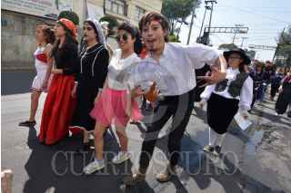 TOLUCA, ESTADO DE MÉXICO, 22MARZO2018.- A unos días de celebrarse el Día Mundial del Teatro, alumnos y egresados de la Licenciatura de Arte Dramático de la UAEM marcharon por las Camelia de la capital Mexiquense para invitar a la población en general a acudir al teatro y conocer el trabajo de estos actores. FOTO: ARTEMIO GUERRA BAZ /CUARTOSCURO.COM