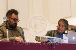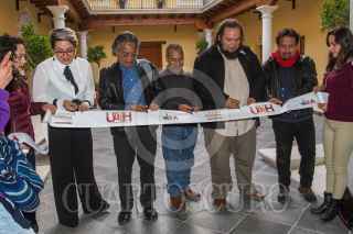 MINERAL DEL MONTE, HIDALGO, 22MARZO2018.- Erika Villanueva Concha, Pedro Valtierra, director de la Agencia Cuartoscuro, Jaime Robledo, Jorge Camarillo, y Enrique Santoyo Godínez, inauguraron la exposición Concurso Cuartoscuro: El Tiempo, en el segundo día de actividades de la Cátedra Patrimonial que lleva su nombre, en el Instituto de Artes de la Universidad Autónoma del Estado de Hidalgo. FOTO: ISAAC ESQUIVEL /CUARTOSCURO.COM