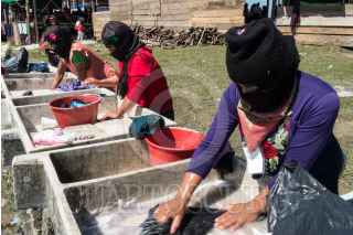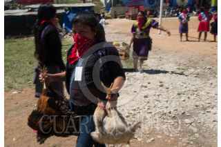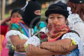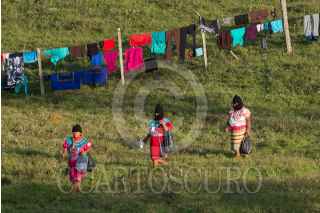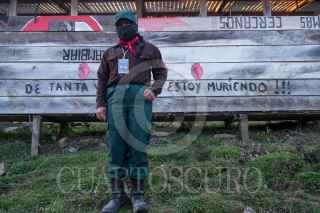 MORELIA, CHIAPAS, 24MARZO2018.- Los pasados 8, 9 y 10 de marzo, cerca de dos mil zapatistas de diferentes comunidades indígenas recibieron a más de 6 mil mujeres de 27 estados de México y 38 países del mundo para llevar a cabo el Primer Encuentro Internacional, político, artístico, deportivo y cultural de Mujeres que Luchan. Desde la madrugada y hasta el anochecer, mujeres cubiertas con pasamontañas preparando café, haciendo tamales, cociendo frijoles, elotes, descargando los camiones de verduras e insumos, atendiendoa las asistentes y haciendo la comida. Otras estaban detrás del audio, tomando video, documentando el evento, al pendiente de las regaderas, la iluminación, y a pesar de sus ocupaciones y responsabilidades, se turnaban de manera que todas tuvieran espacio para poder jugar futbol, amamantar a sus hijos, asistir a los talleres, bailar y hasta entonar sus corridos revolucionarios. FOTO: ANDREA MURCIA /CUARTOSCURO.COM