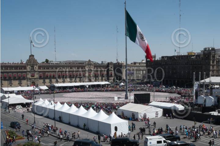 CIUDAD DE MÉXICO, 24MARZO2018.- Miguel Ángel Mancera, Jefe de Gobierno de la Ciudad de México, presidió la edición 14 de la formación de la flor de Liz más grande del mundo en el Zócalo Capitalino. Esta es el emblema scout mundial y representa compromiso, identidad y hermandad, de más de 40 millones de jóvenes del mundo. Un total de un millón 485 mil latas aplastadas dieron forma a esta flor. FOTO:CUARTOSCURO.COM