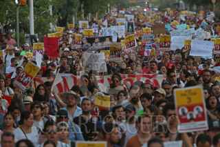 GUADALAJARA, JALISCO, 24MARZO2018.- Miles de personas entre estudiantes, maestros, familiares y amigos de la Universidad de Medios Audiovisuales, de la Universidad de Guadalajara y del ITESO, marcharon de la Glorieta de los Niños Héroes a la Fiscalía General del Estado, para exigir que aparezcan con vida Javier Salomón, Marcos Ávalos y Daniel Díaz estudiantes de cine del CAAV levantados por hombres armados el pasado lunes, así como por todos los desaparecidos de México. FOTO: FERNANDO CARRANZA GARCIA / CUARTOSCURO.COM